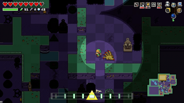 ローグライクリズムアクションゲームである「クリプト・オブ・ネクロダンサー」に「ゼルダの伝説」の世界観(キャラクター、フィールド、アイテム、BGM)を導入した作品になります!