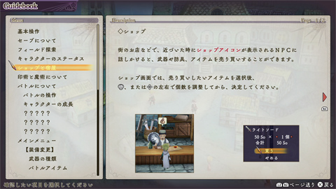 新機能「ガイドブック」では、ゲームシステムをどこでも確認可能になりました。
