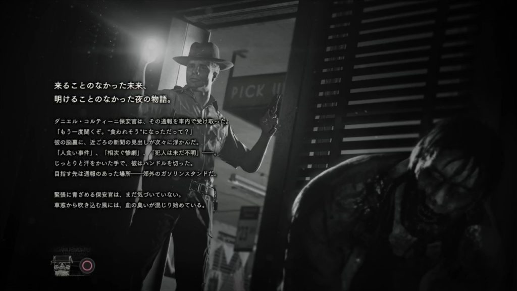 ガソリンスタンドでゾンビに襲われてしまった保安官である。