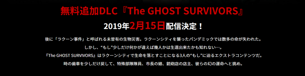 カプコンは『バイオハザード RE:2』の無料追加コンテンツ“THE GHOST SURVIVORS”を2019年2月15日に配信されました!
