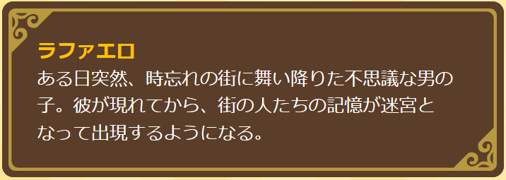 そんな街に突然現れた謎の少年ラファエロと数々の不思議なダンジョンを冒険していく。