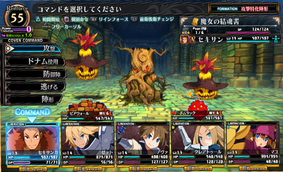 最大40人+αで戦うことができる。カヴンの数5×8人で最大40人+αのキャラクターが戦闘に参加する集団戦となる。