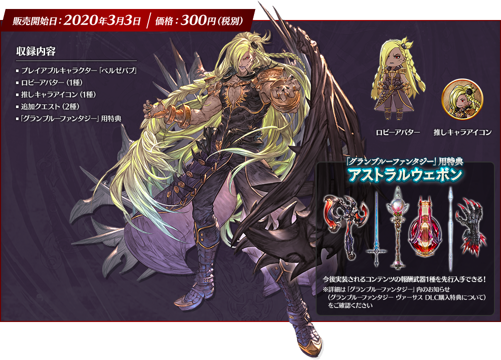 『グランブルーファンタジー ヴァーサス』第1弾DLCキャラクターの「ベルゼバブ」が3月3日に配信が決定されました!