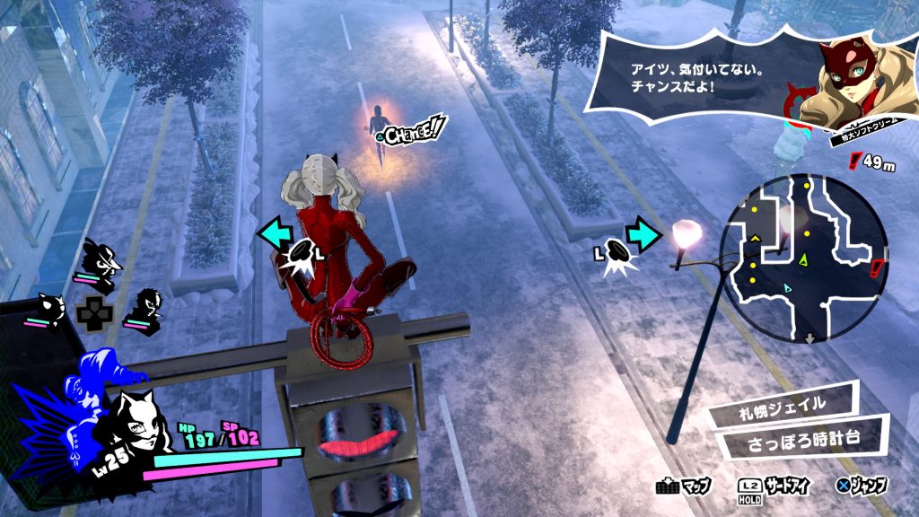 敵に見つかると不利な状況からバトルが始まってしまう。ファントムムーヴを活用して高所や物陰から敵シャドウに奇襲攻撃を仕掛けよう。