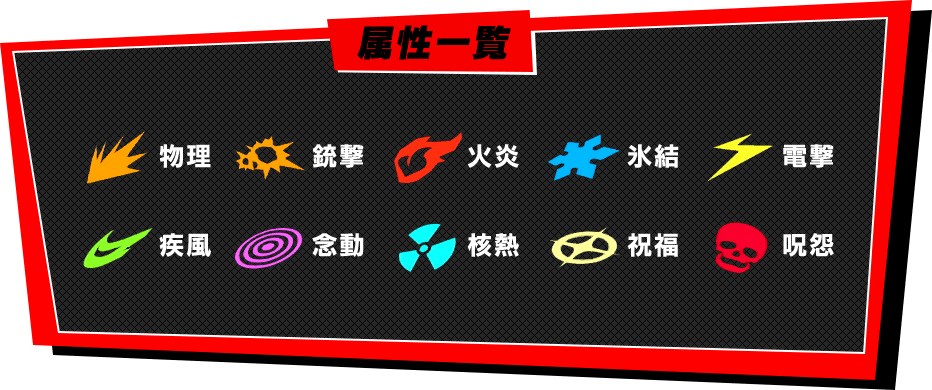 攻撃スキルには、火炎や氷結といった様々な属性があり、敵には、属性に対して耐性や弱点などの相性がある。