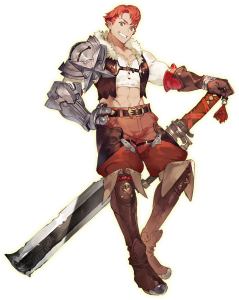 常識人の豪腕戦士ライザとタオの幼なじみ。とある事情で村では冷遇されており、いつか大きな手柄を立てて、村人を見返したいと思っている。調子がよい若者に見えがちだが、友情に厚く、お人好し。常識人としての感覚も持っており、破天荒なライザの行動を止めることもしばしば。