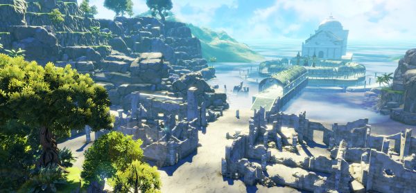 こちらは海岸沿いの遺跡、奥にある建物が気になりますね。