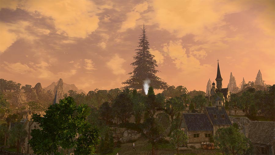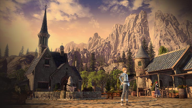 セントラル・カセドラルの城下町の風景、市井の人で賑やかそうだ。