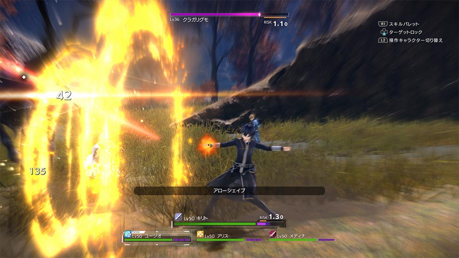 ソードスキルの始動が早く、リーチも長いため、プレイヤーの工夫次第で、敵に大ダメージを与えることができる。